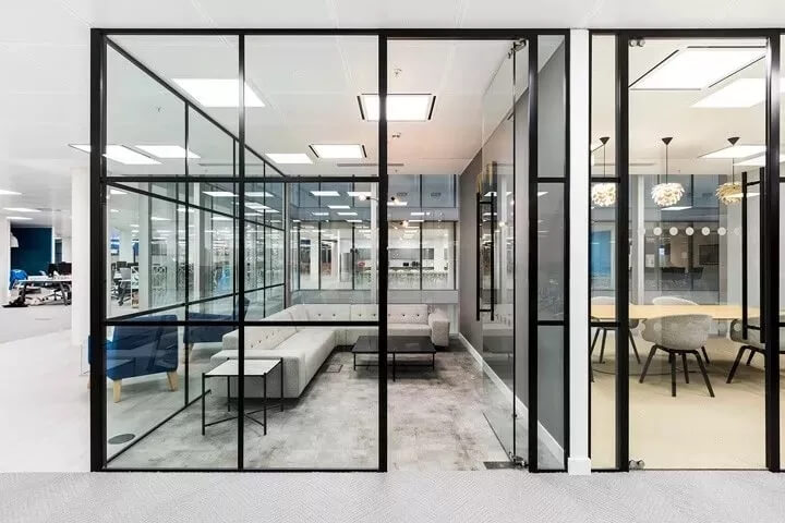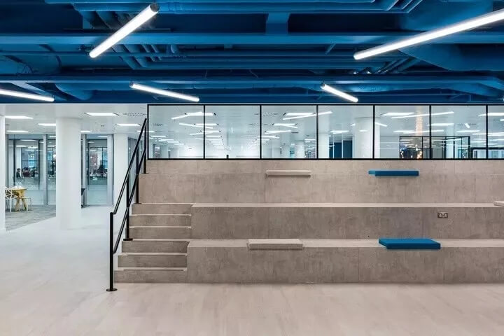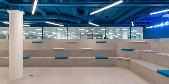 特點(diǎn):科技,總部、英國、斯堪的納維亞設(shè)計(jì)風(fēng)、寧靜自然簡約、灰色、藍(lán)色頂面、水泥質(zhì)感、看臺(tái)式階梯座、車廂座、玻璃隔斷