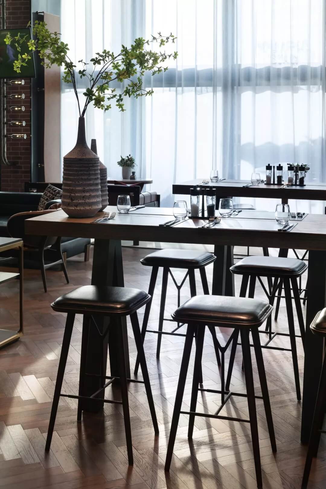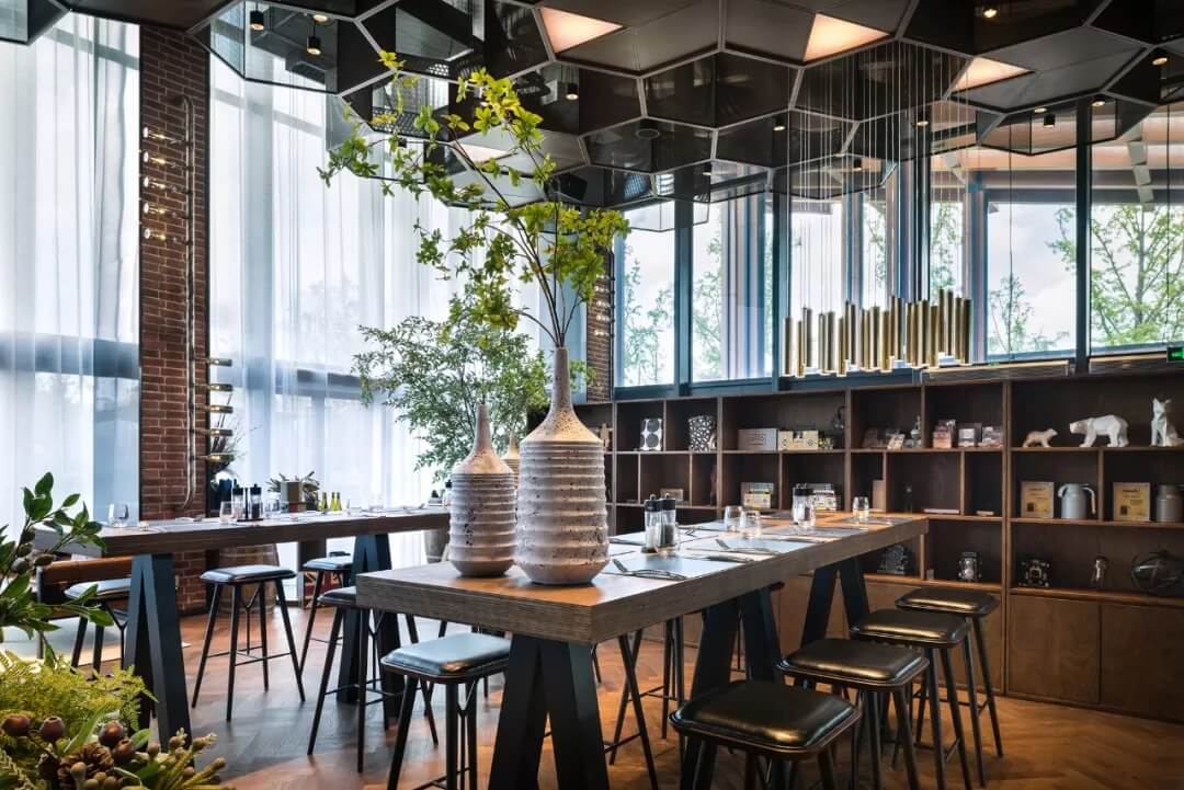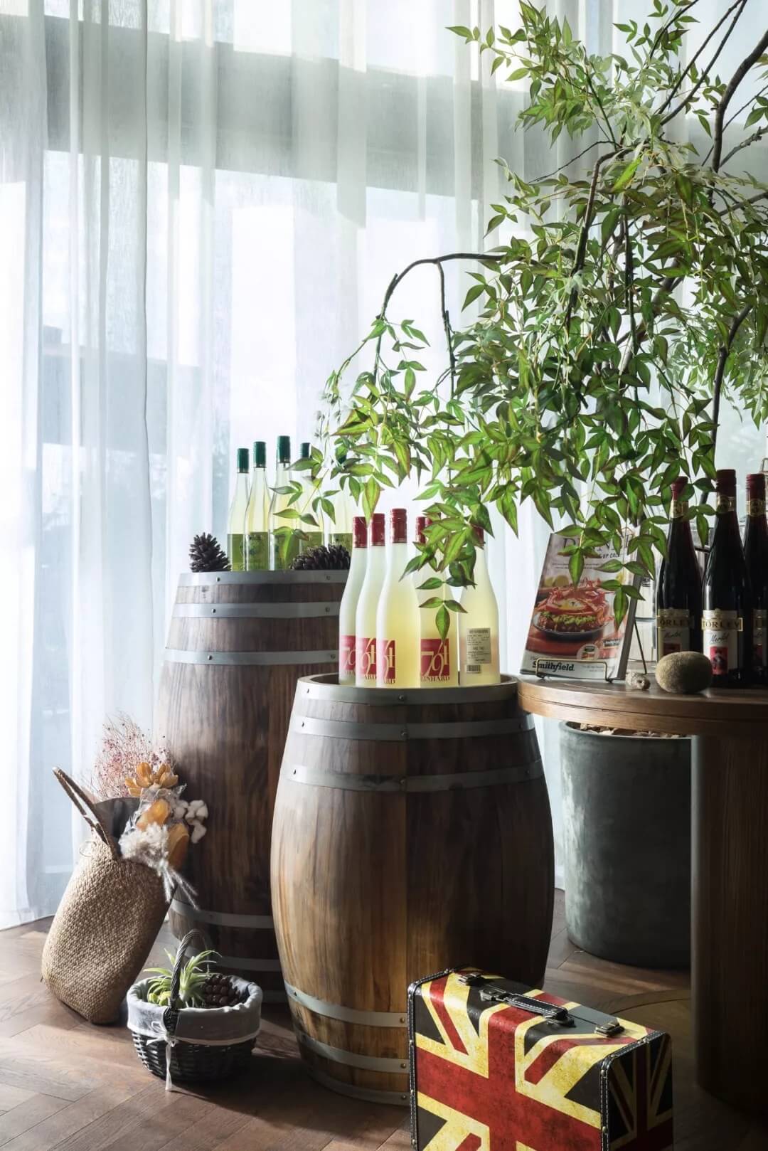 自然的青翠綠意與質(zhì)樸的啤酒桶木藝氣質(zhì)互融,靈韻交加,酒香沁人,不加過多修飾地圍合出一隅相對靜謐的臨窗休閑區(qū)。在這里,設(shè)計透過落地玻璃窗的相隔將內(nèi)外視域完全打開,陽光傾灑進來,引入截然不同的清新與濃密的自然舒適度,外在景觀與內(nèi)在布設(shè)氣質(zhì)相合。