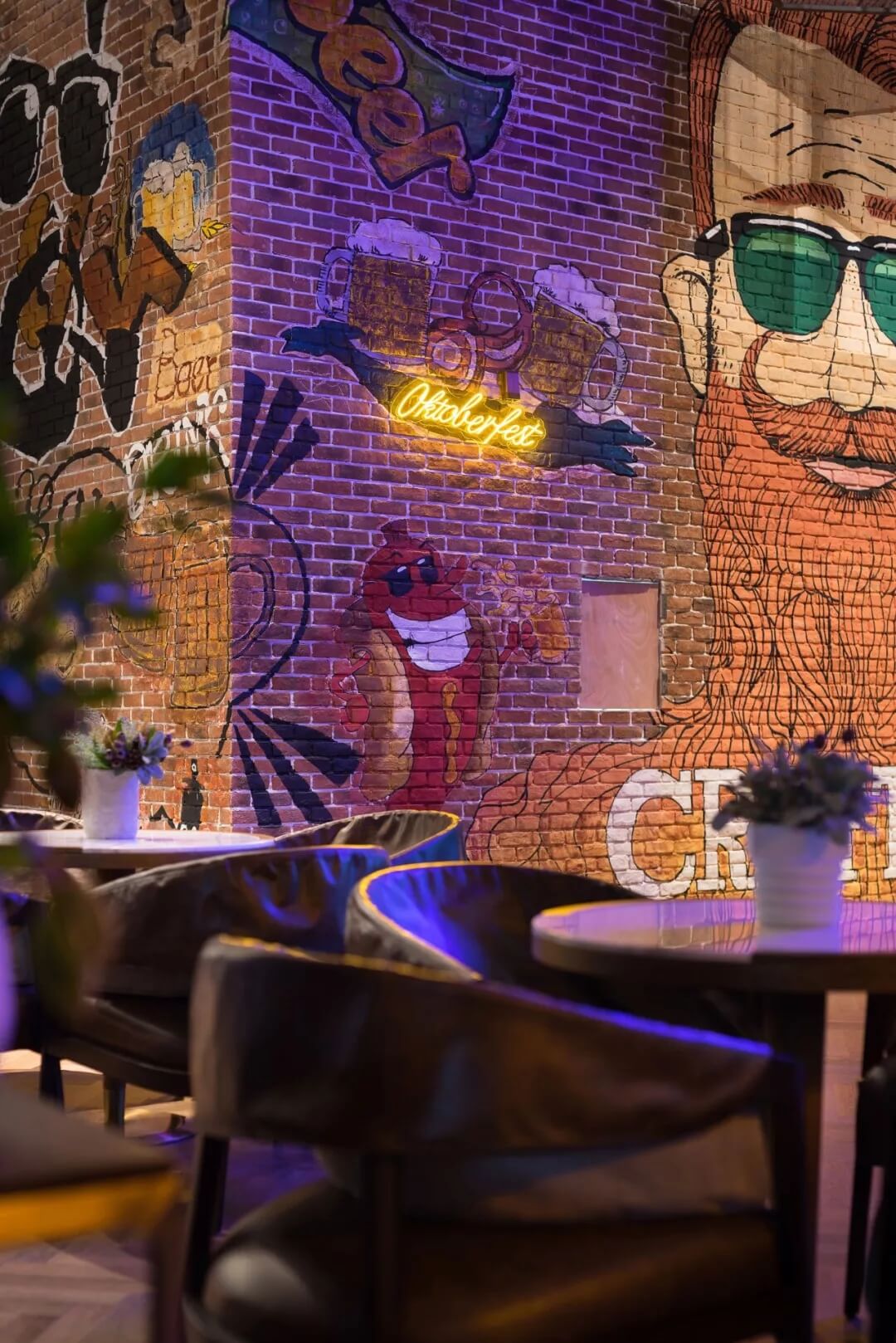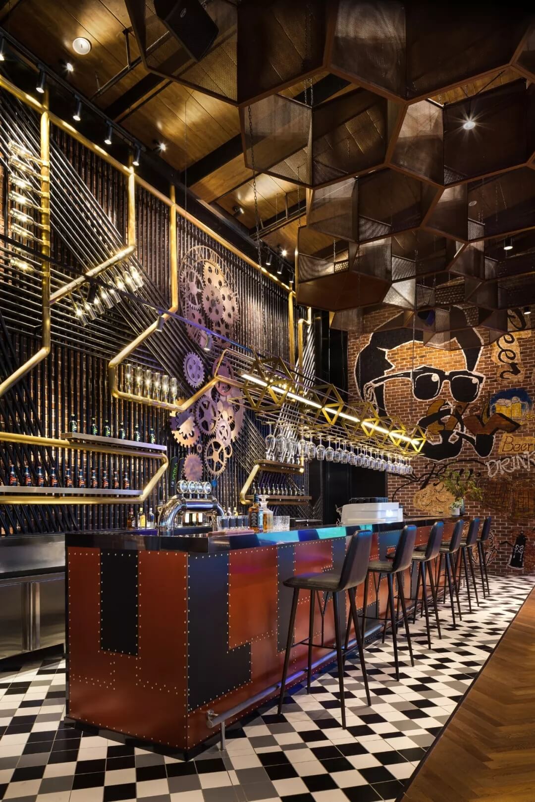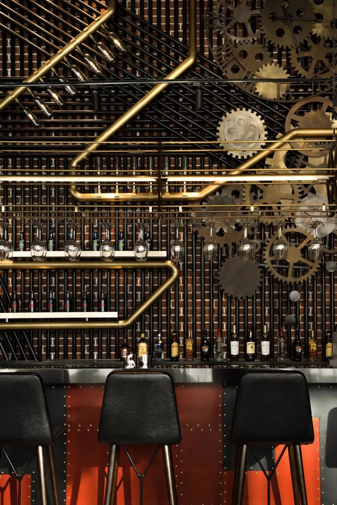 工業(yè)風的精髓在于,在原空間樸拙素簡的本真狀態(tài)下延展其自由隨性的氣質(zhì),在粗獷的空間架構(gòu)中消解拘束感,呈現(xiàn)出大氣又不失細膩的美感。粗礪的紅磚墻、朋克夸張的墻畫涂鴉、裸露的管道線路、復古做舊的齒輪掛件、紅黑交接的鉚釘吧臺......統(tǒng)攝進工業(yè)風的設(shè)計常規(guī)之中。