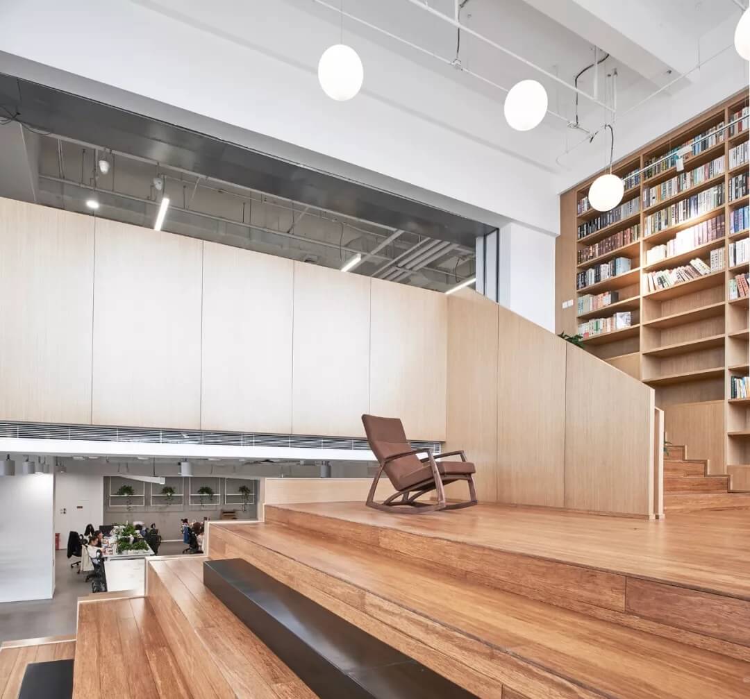 美不止于外在,更追求內(nèi)心。8-9層是新氧心靈之約—圖書閱讀區(qū)。木飾面板大樓梯,高懸掛的裝飾燈,營(yíng)造出安靜舒適的閱讀氛圍,同時(shí)也可以作為小型沙龍或讀書分享活動(dòng)場(chǎng)所。