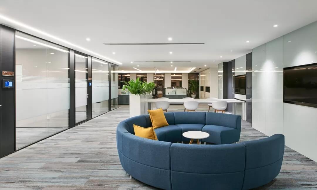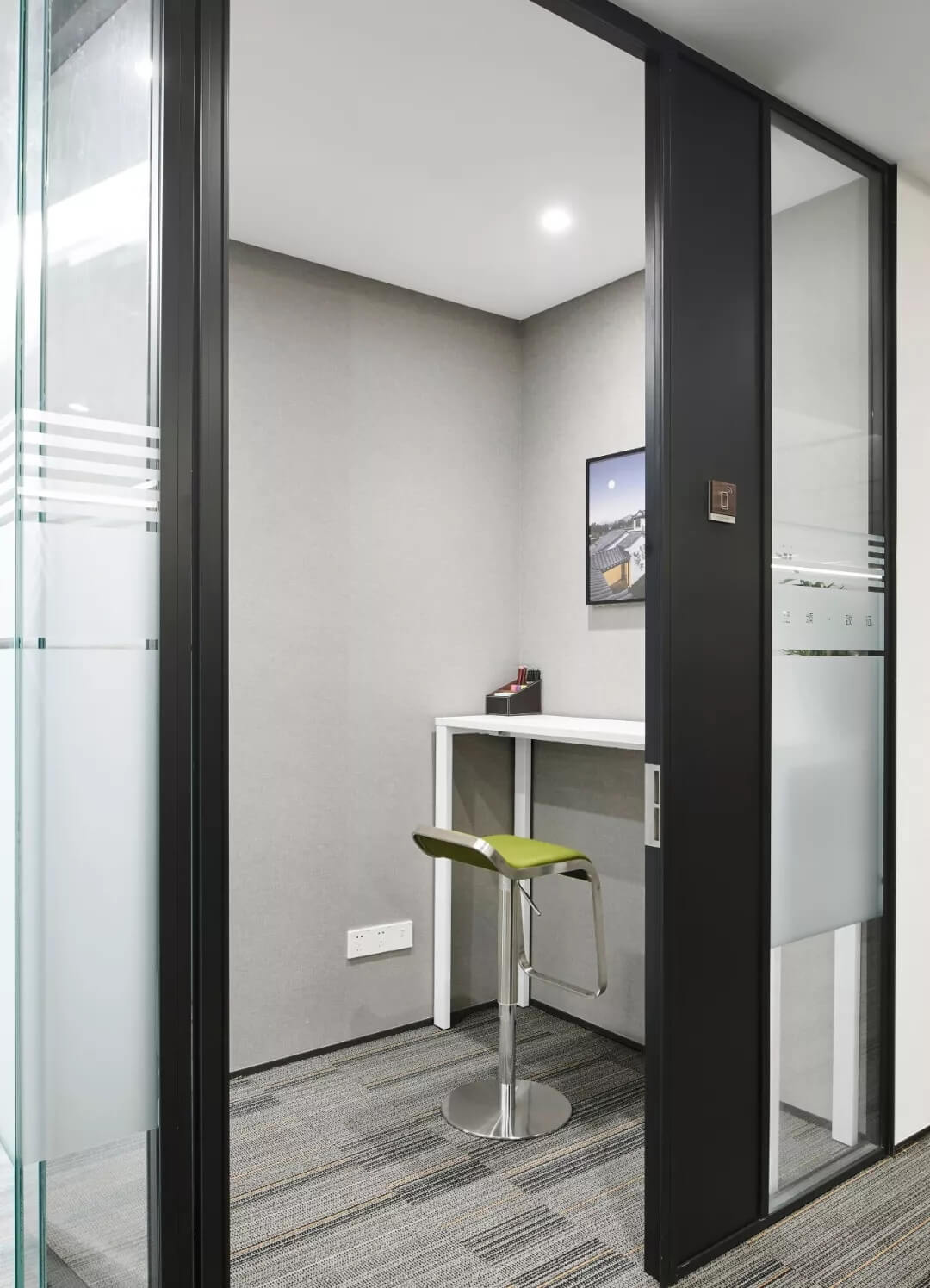 設(shè)計師綜合融創(chuàng)的不同會議使用訴求以及原建筑結(jié)構(gòu),在空間布局上,打造核心筒混合會議帶,不同大小、不同形式的會議空間嵌套在每層開放辦公區(qū)的不同位置,滿足多元化會議需求;卡座,開敞洽談區(qū),休閑洽談區(qū)滿足互動交流,頭腦風(fēng)暴式會議需求。多層次多功能的交流會議由智能系統(tǒng)高效管理,體現(xiàn)融創(chuàng)開放、包容的企業(yè)文化。