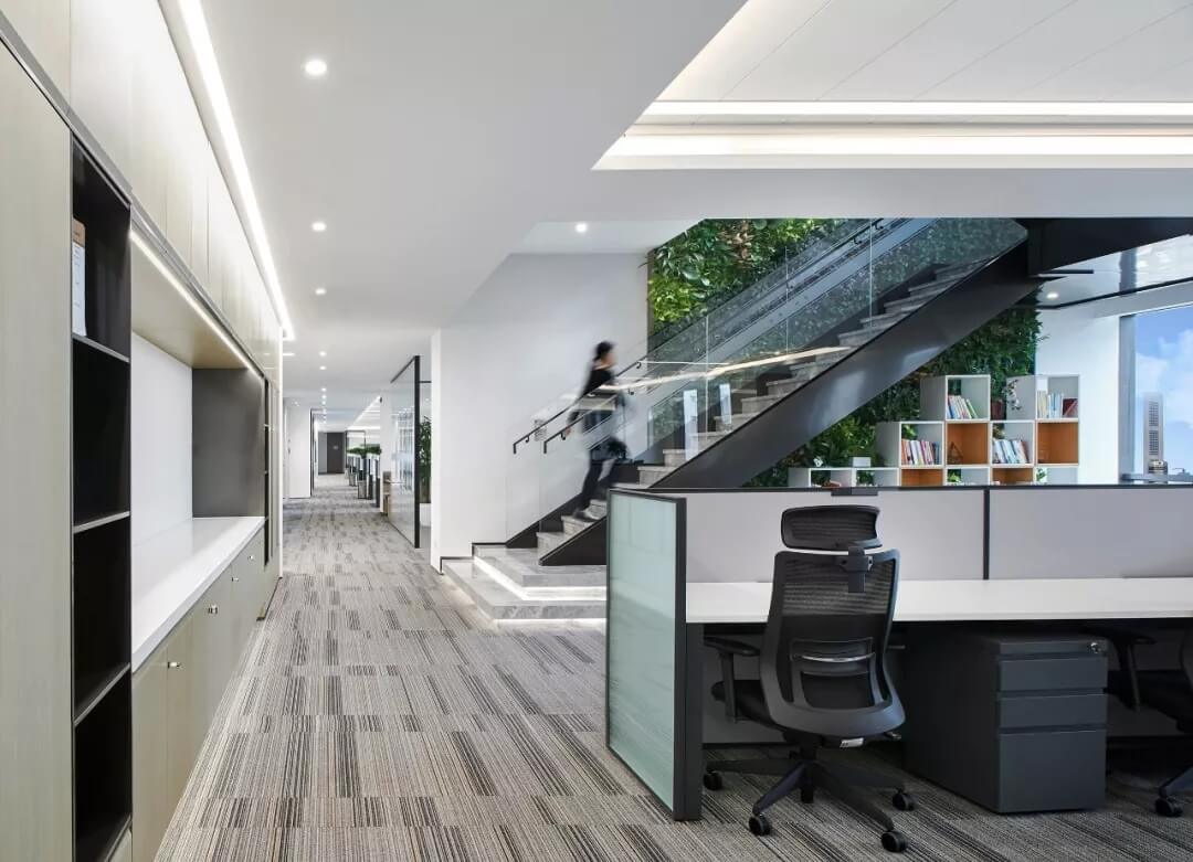 步梯采用極簡折轉(zhuǎn)的造型和玻璃材質(zhì),每層的樓梯區(qū)結(jié)合景觀設(shè)計,聯(lián)通電梯入口,茶水間,設(shè)置景觀小品,圖書閱讀空間,洽談卡座,等候區(qū)等,形成辦公空間的共享交流區(qū)和創(chuàng)意生活區(qū),打造有活力,展示性強(qiáng)的員工休閑活動區(qū)。