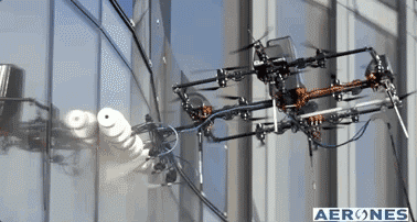 ▲無人機代替蜘蛛人清洗幕墻