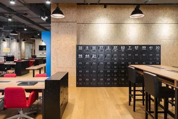 明黃色和紅色的主調(diào),在加之其他顏色作為點(diǎn)綴,極具現(xiàn)代感的日式風(fēng)格使整個(gè)辦公室看起來豐富又不失簡潔。不僅如此,公司還設(shè)有VR體驗(yàn)室、臺(tái)球室、茶室供員工在工作閑暇時(shí)放松娛樂,時(shí)不時(shí)還能和養(yǎng)在公司的JC喵談?wù)勑哪亍?/p>