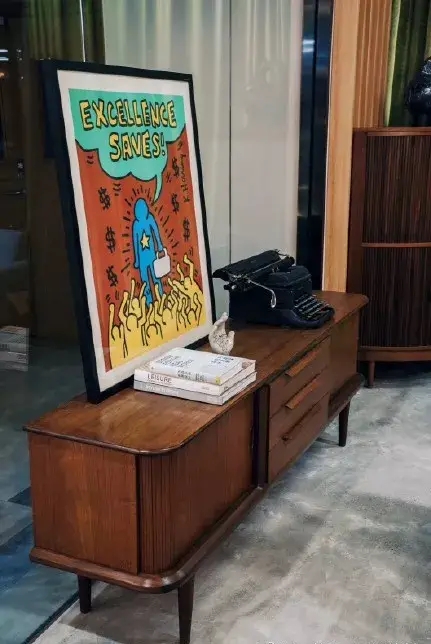 角落處擺放的色彩突出的插畫、可愛搞怪的小擺件、還有迷你的桌上足球,好像在說著,我們不僅高冷也可以很可愛。