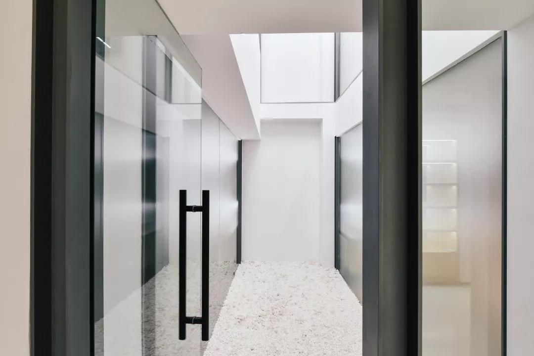 出于功能的需要,我們不得不在空間中加入隔墻,但為了讓老房子的肌理更加清晰,隔墻在與天花線腳的交界處切割為線腳的形狀,令原有天花線腳在視覺(jué)上保持連續(xù)。新置入的墻也一再被簡(jiǎn)化,只有片段的玻璃、白墻、鋼柱直接裝在舊有構(gòu)筑上。同時(shí),為了盡可能減少干擾視覺(jué)的繁瑣因素,我們對(duì)細(xì)節(jié)反復(fù)推敲,讓每一處純粹到極致。