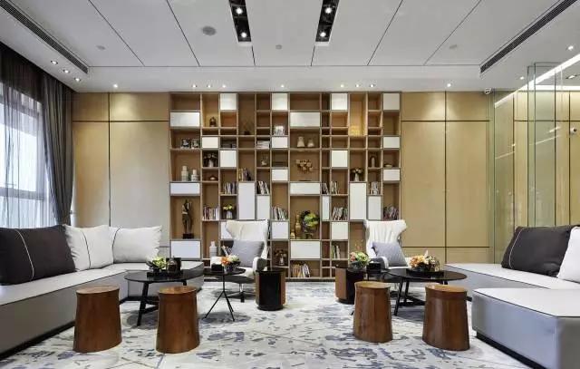 接待前廳:木制線(xiàn)條勾勒出自然光影變幻,原木的質(zhì)樸粗糲與細(xì)致的金屬線(xiàn)條對(duì)撞出現(xiàn)代美學(xué)趣味,生動(dòng)有趣的屏風(fēng)和燈飾,石材與金屬板映襯出明暗互動(dòng),虛實(shí)掩映的空間氣質(zhì),輕松雅致是設(shè)計(jì)者締造氛圍的關(guān)鍵。