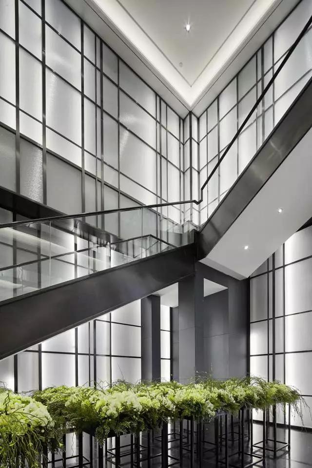 樓梯墻面引入“光線(xiàn)”的概念,設(shè)計(jì)上以簡(jiǎn)潔的橫豎向線(xiàn)條元素構(gòu)成,結(jié)合原建筑結(jié)構(gòu),充分發(fā)掘空間內(nèi)的建筑感。