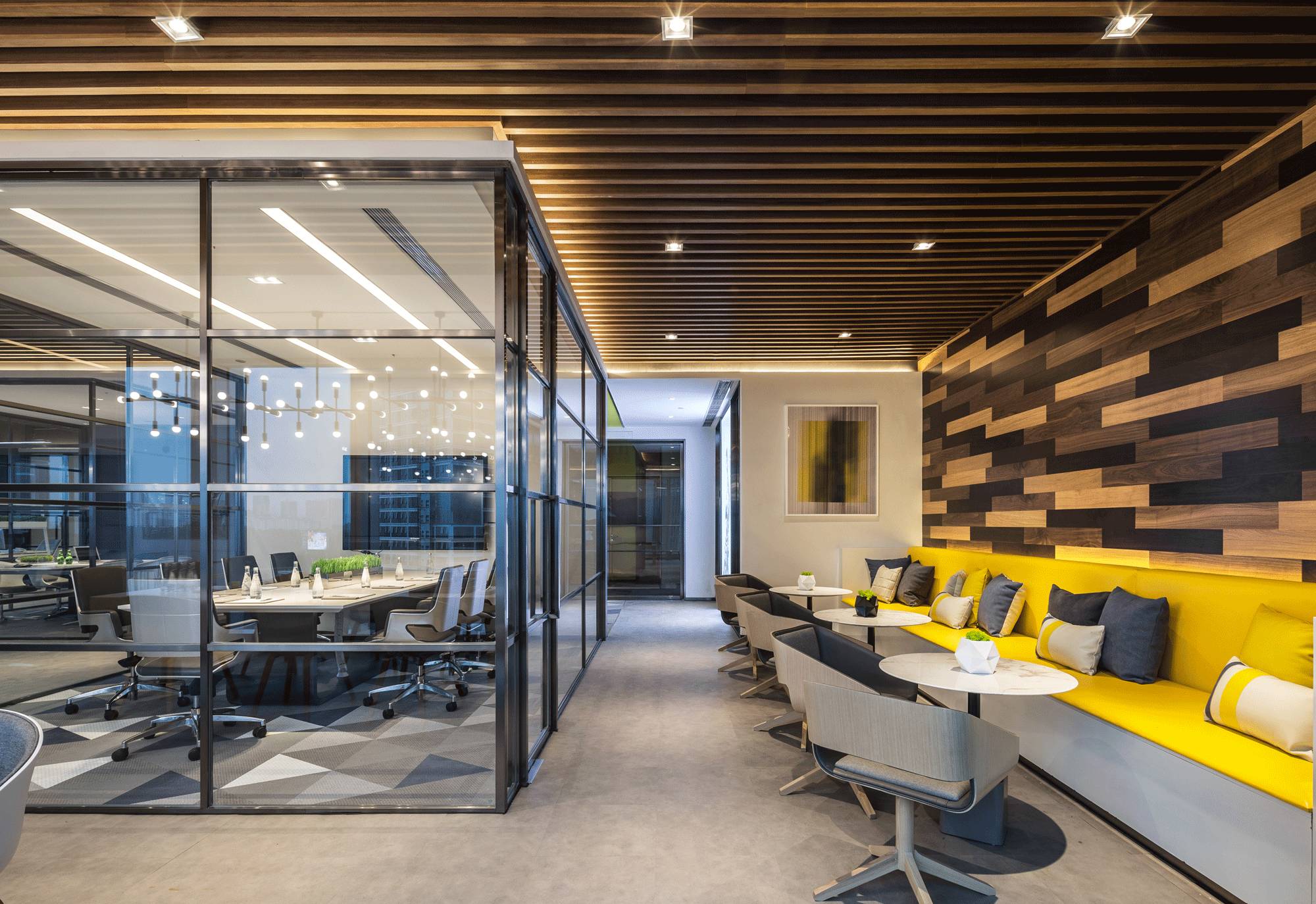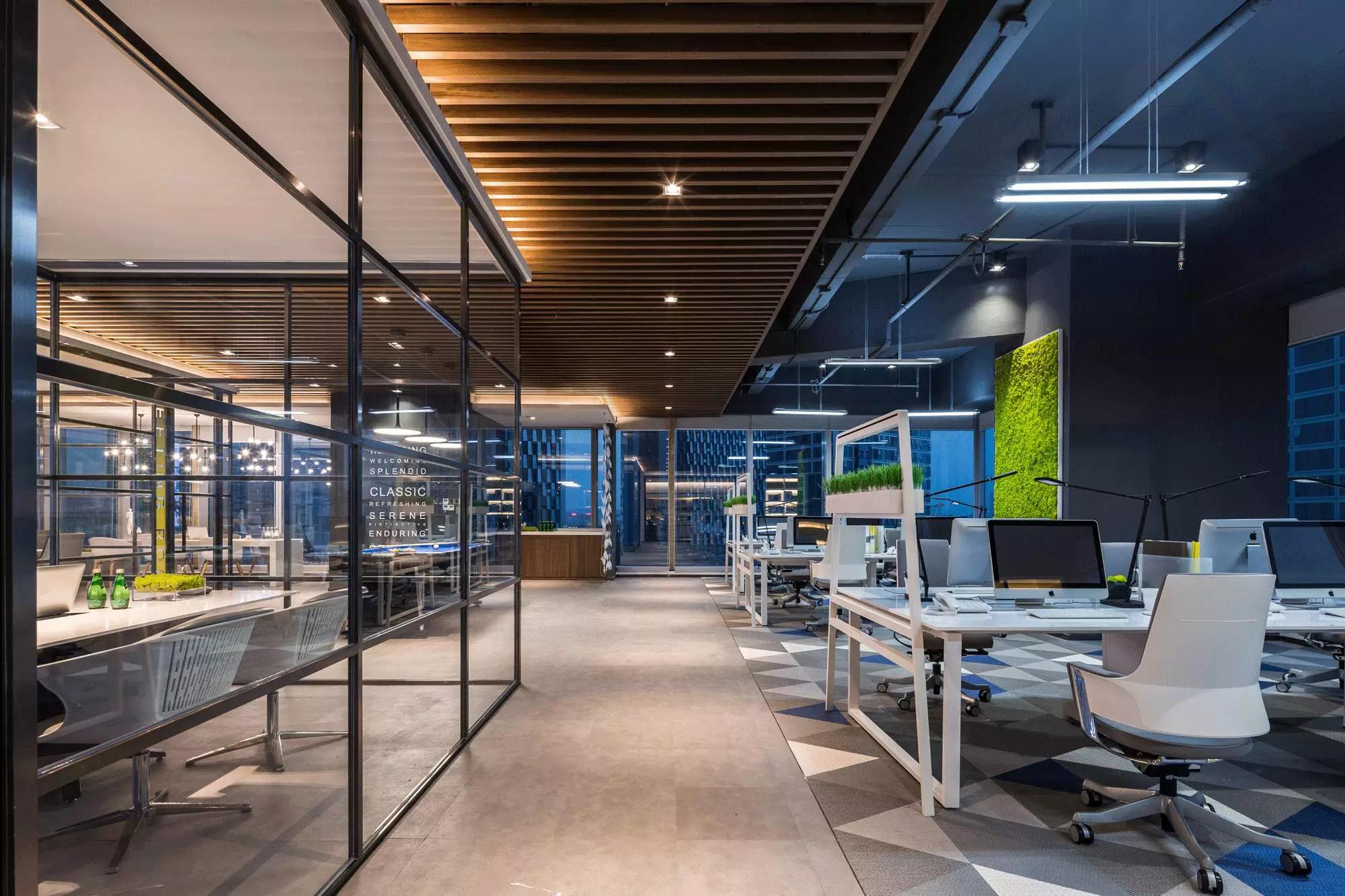 采納了“自由”空間慣用的開放式設(shè)計(jì),拋棄了沉悶的障礙物、墻壁,僅預(yù)留必要的墻體,并用少數(shù)玻璃分割不同的空間,多人會(huì)議室、小組會(huì)議室的靈活設(shè)計(jì),動(dòng)線連貫流暢,充分滿足了現(xiàn)代科技空間“樂(lè)活、高效”的辦公需求。