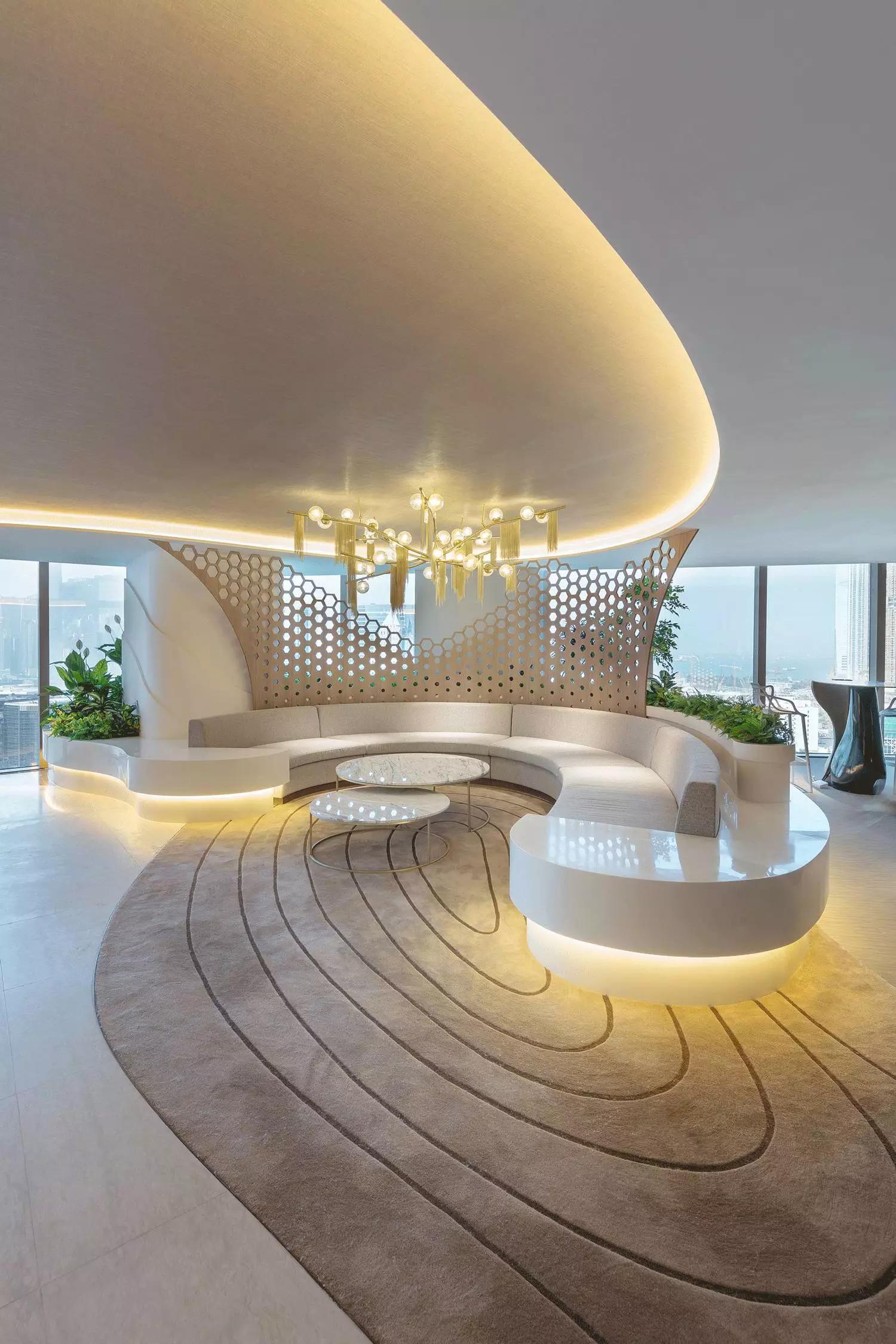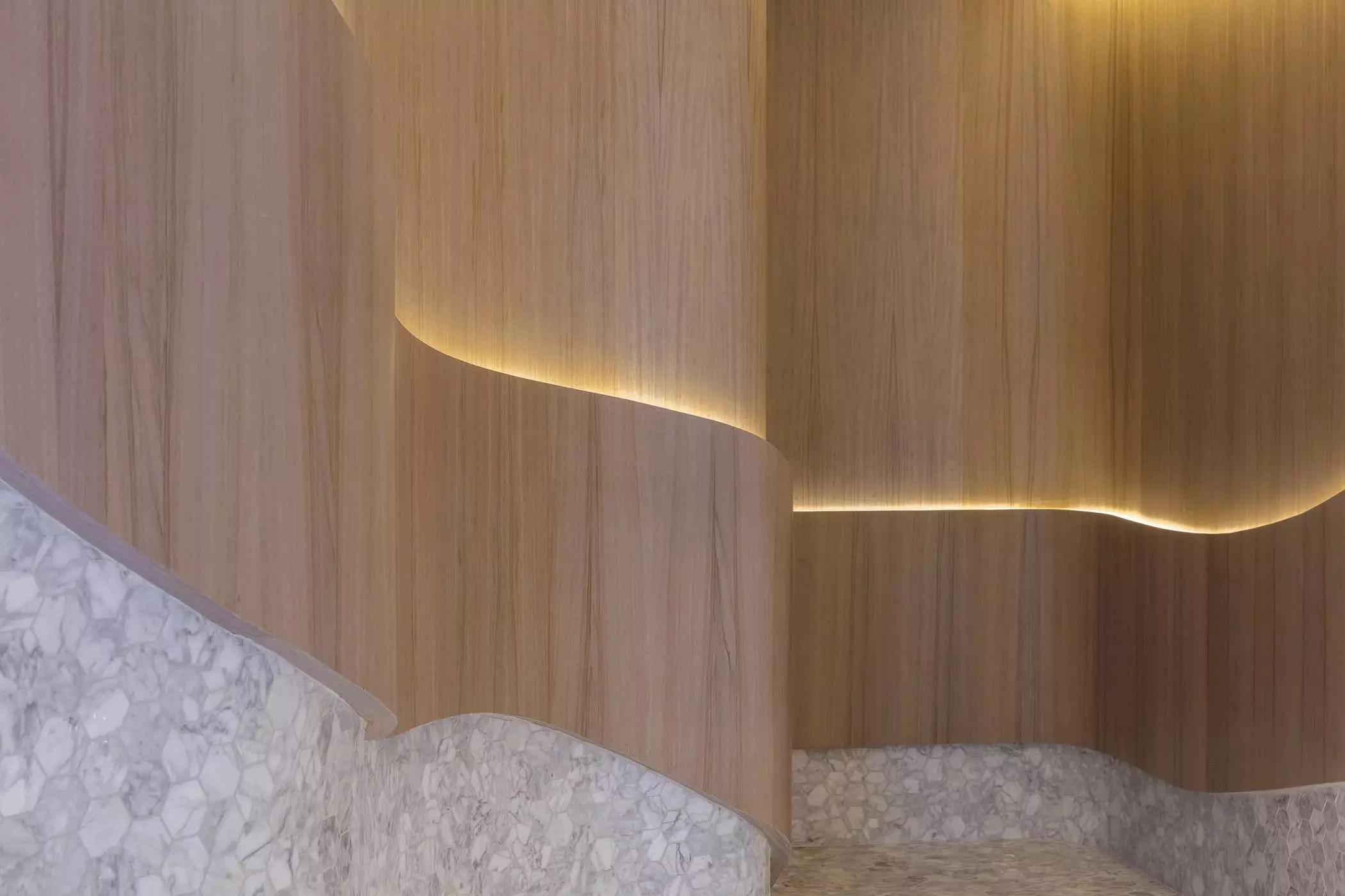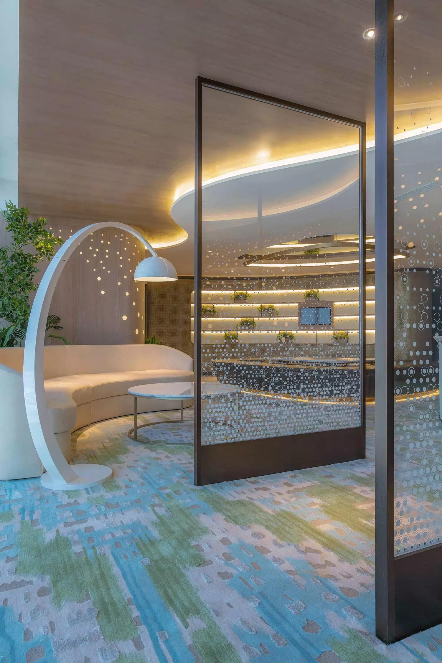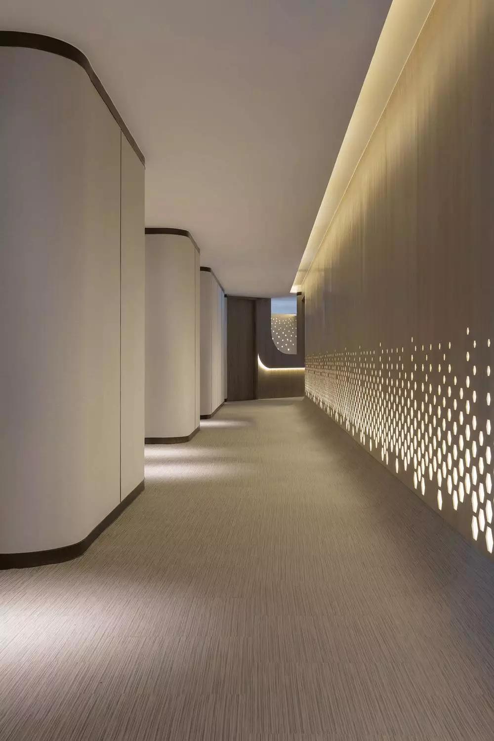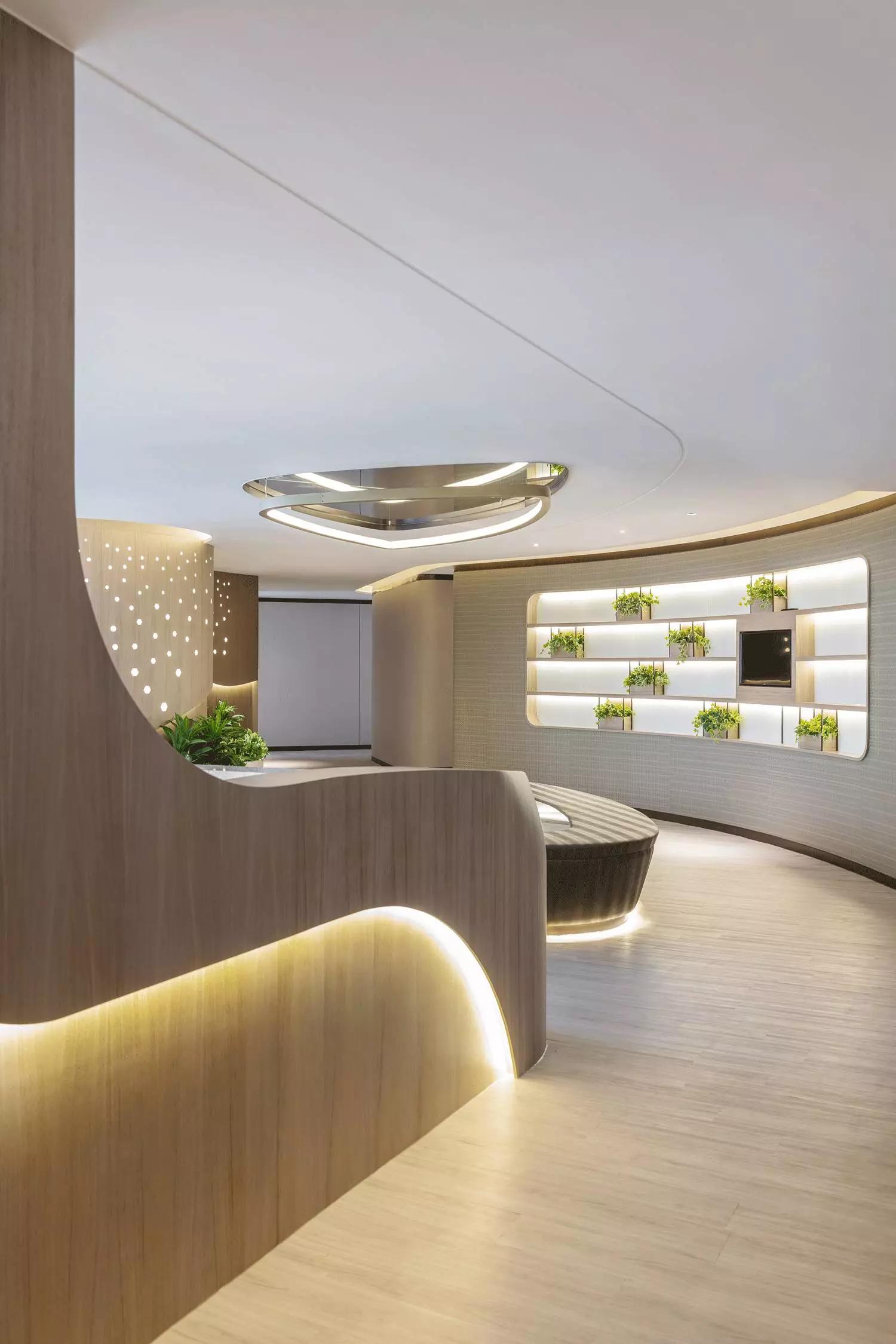 波浪起伏的輪廓舒適宜人,以材質(zhì)和色彩轉(zhuǎn)換空間的調(diào)性,薈萃最恬適的元素塑造循序漸進的氛圍體驗,猶如憩時份花園回廊,緩和心靈才能得以配合各種療程。