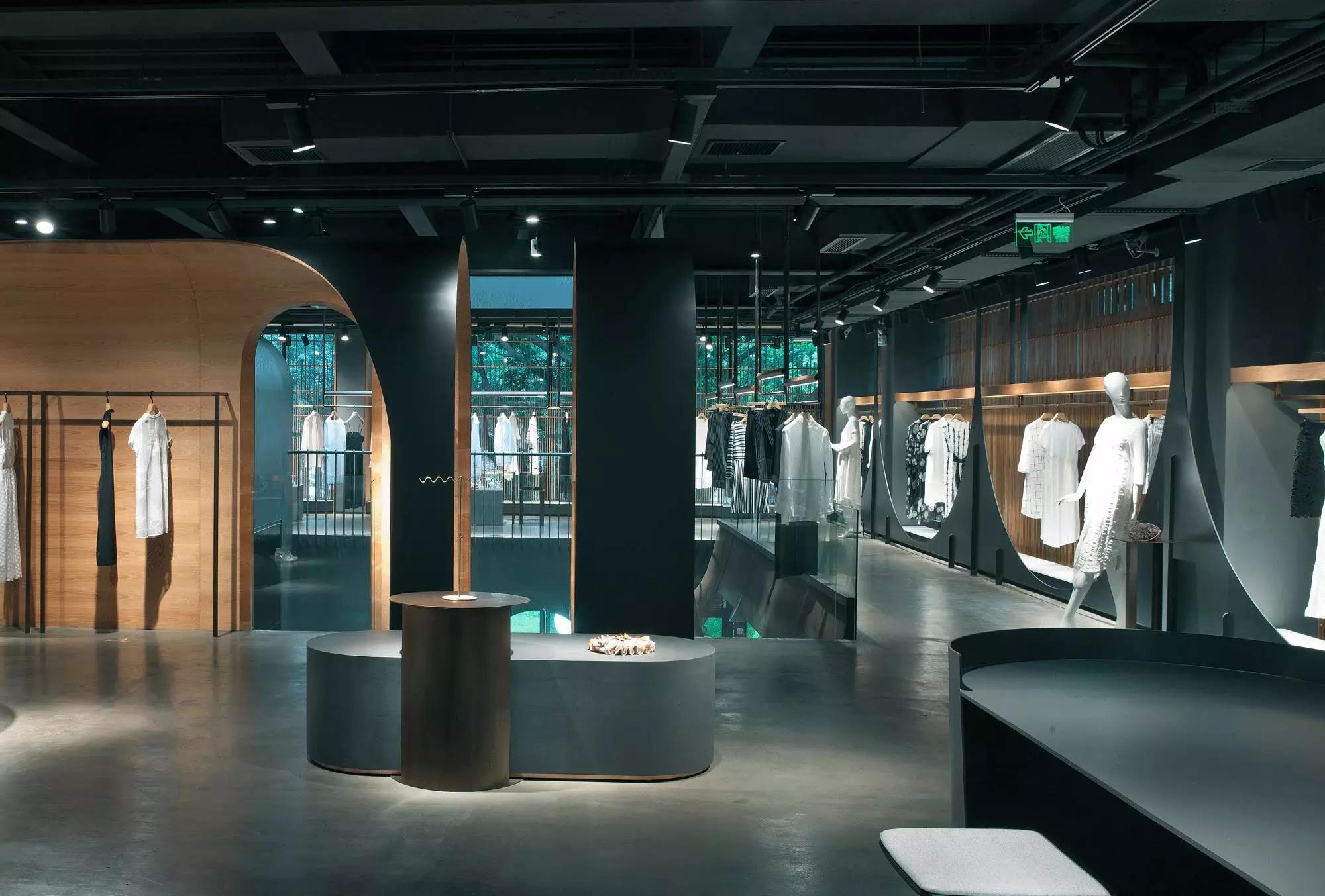 MINZE-STYLE品牌集合店設(shè)計構(gòu)思源自場地當(dāng)中公園的記憶。建筑簡潔純美、內(nèi)含弧線的方正形體,樸素、細膩而精致的鋼面與玻璃,由“弧拱”遮蔽而成的展廳,以及建造上從整體到細部極高的完成度,都在與所處地段的歷史相呼應(yīng),共同組成既承載工業(yè)文明記憶又富于現(xiàn)代美感的品牌空間。同時,設(shè)計巧妙地將多余的裝飾去掉,使內(nèi)部展廳空間省卻了做作的裝飾,堪稱完美。