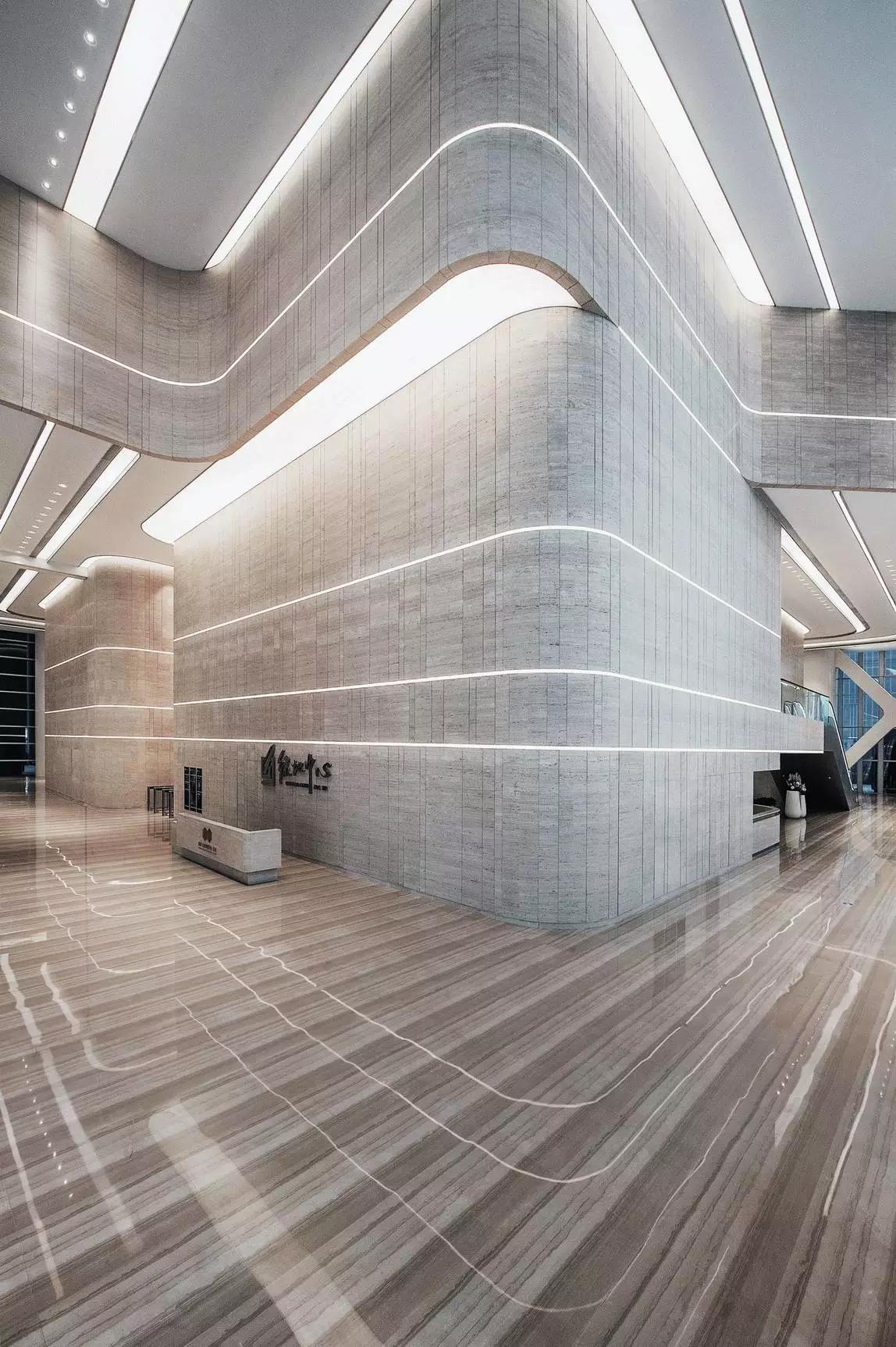 大堂設計將空間塑造作為首選,將形式、質感、光與影等要素組合融入,創(chuàng)造性的表達空間的品質和精神,放棄了多余的裝飾與造型,著重展現(xiàn)室內空間與建筑空間的統(tǒng)一性。